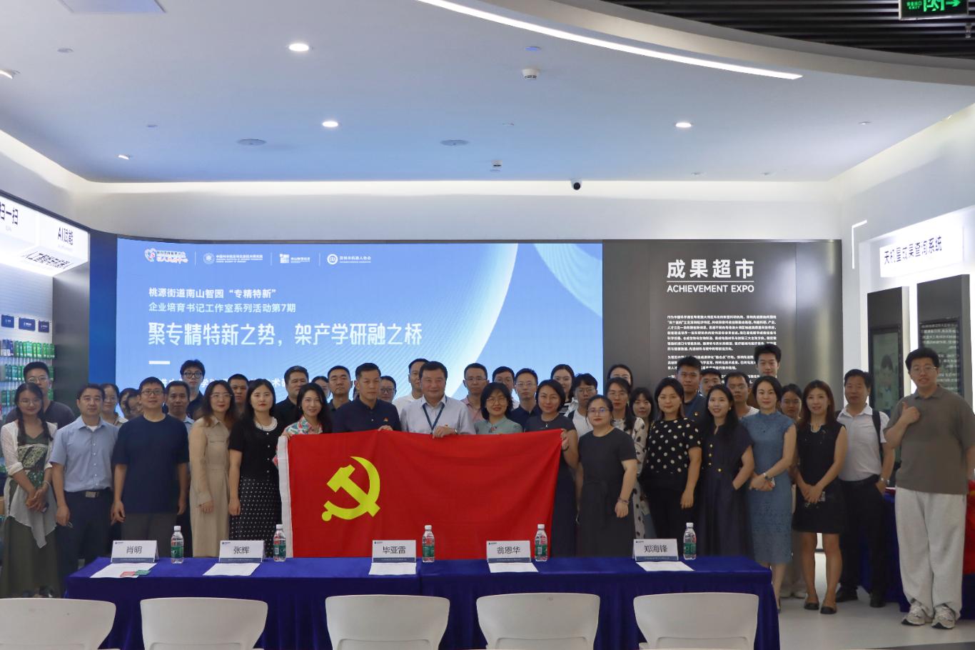为深入贯彻创新驱动发展战略,强化党组织在科技创新与成果转化中的引领作用,6月30日,在深圳市南山区桃源街道党工委的指导下,管理五支部与南山智园党委、深圳市机器人协会党支部联合主办南山智园“专精特新”走进“成果超市”联合党建活动。此次活动是落实中国科学院“融合点”行动的重要实践,旨在以主题党日为载体,推动高技术企业与科研成果的精准对接,也是党建赋能区域高质量发展的生动体现。