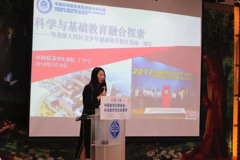 之后,深圳市教育科学研究院院长叶文梓、深圳先进院科普工作负责人丁宁宁依次上台,分别作了关于《教育创新的深圳探索》和《科学与基础教育融合探索》的主题报告演讲。