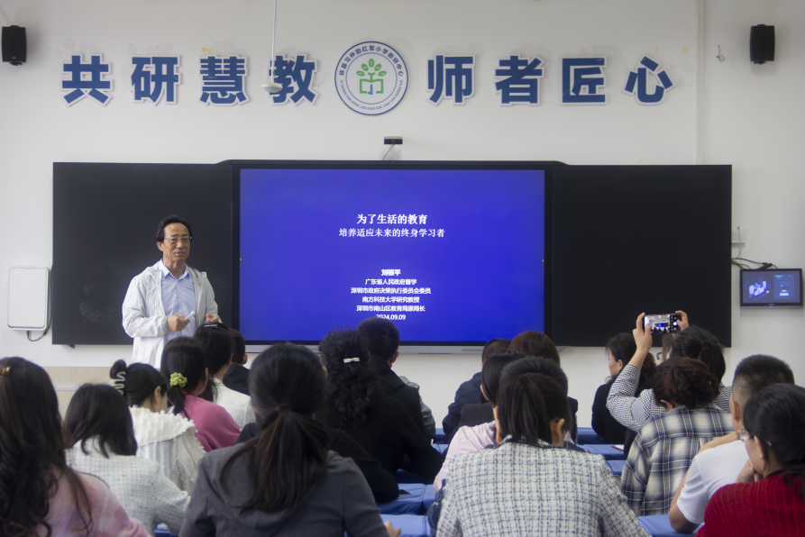 科学课示范、教师座谈交流会,为陇东革命老区教师成长赋能。活动邀请到广东省人民政府督学、南山区教育局原局长刘根平通过座谈与庆阳教师近距离交流,进一步激发教师的内生动力;同时,深圳科学教师从教学设计、教学组织等科学教学能力角度,为庆阳教师提供了创新思路及实践示范,助力当地教师队伍建设。