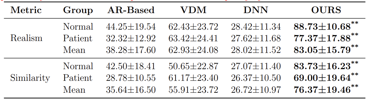 实验结果表明,Uni-UTIDiff 不仅在统一框架下能够分别达到针对健康与病理语音的专家模型性能水平,还能在生成的舌超声图像中展现出优异的清晰度与自然度,充分验证了其在跨发音模式下的鲁棒生成能力。