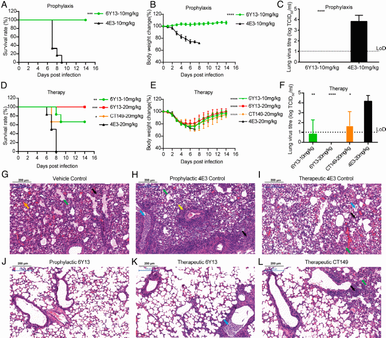 图3 6Y13对H7N9病毒感染小鼠的保护作用