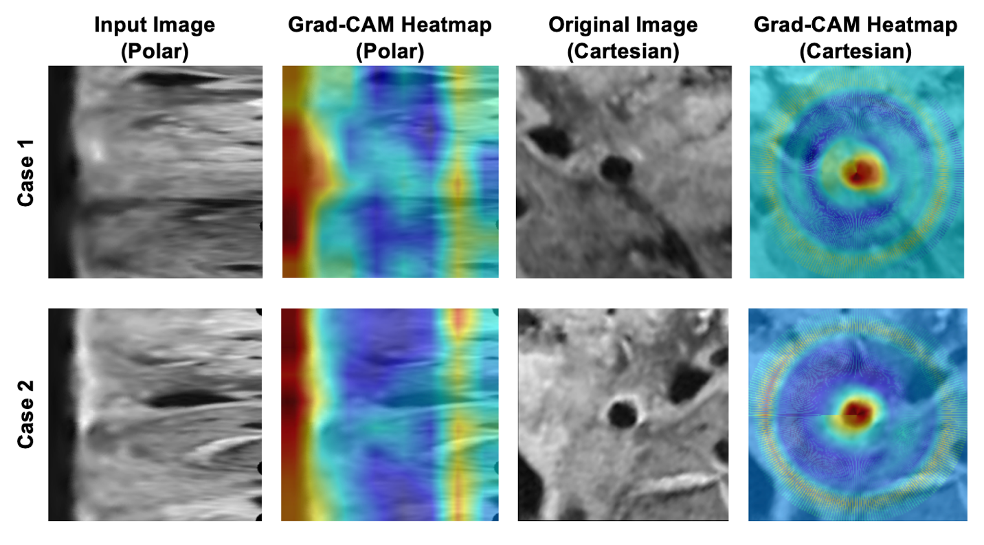 具体而言,团队借鉴数学中的极坐标概念,将圆形的血管横截面如同展开一幅卷轴般转换为平面矩形结构,这种“线性化”处理显著增强了模型对血管壁径向厚度变化与连续性的表征能力,从而在解剖结构复杂的区域实现了分割精度的大幅提升。此外,为解决极坐标变换可能带来的角度端点不连续问题,研究者设计了特征共享填充策略,确保了血管壁在角度维度上的形态连贯性,进一步提升了模型对真实解剖结构的建模精度。最后,团队还提出了专门的极坐标Dice损失函数,重点优化在图像中占比小、却极具临床意义的血管壁区域,使模型在复杂背景中仍能保持优异的边界识别能力。