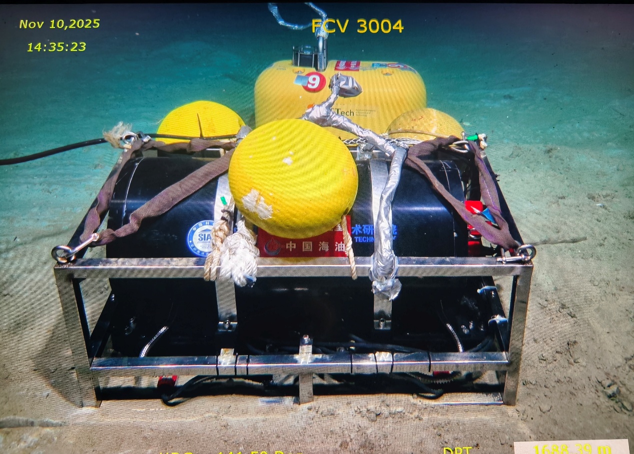 2025年11月,怀柔实验室联合中国海油在琼东南水深1695米海域,实施了全球首次深海CO2水合物固化封存探索性海试作业。此次作业应用了中国科学院深圳先进技术研究院(以下简称“深圳先进院”)海洋探测科学仪器研究团队研制的深海海底原位电磁脉冲声源(Boomer)进行海底地震的采集。