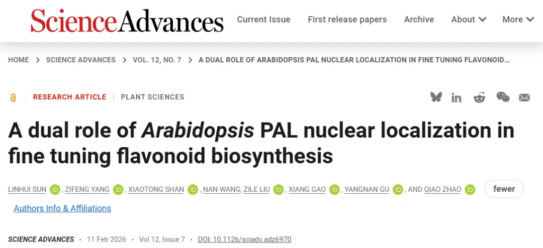 Science Advances | 当经典代谢酶“走进细胞核”:植物如何为黄酮代谢踩下“分子刹车”?