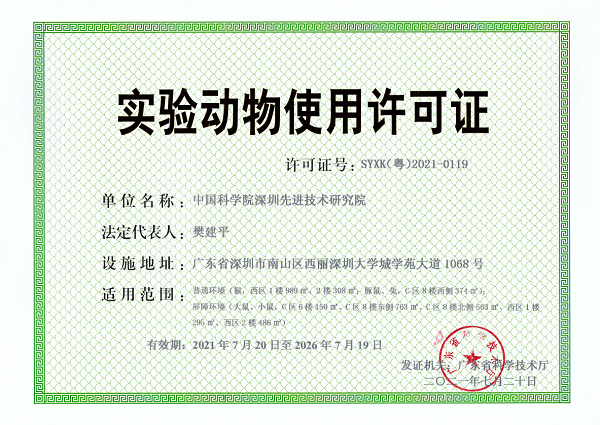 7月20日,广东省科学技术厅正式发布准予行政许可决定书并向先进院颁发实验动物使用许可证。