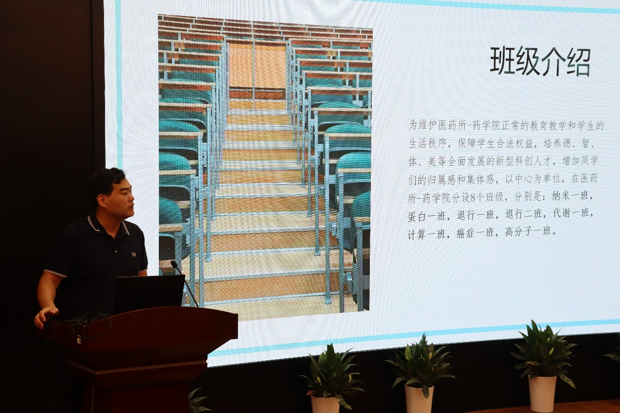 为了更好地培养学生的集体感和归属感,根据院学生工作安排,拟在医药所/药学院试点成立学生工作办公室,并以中心为单位设立班级,每个班级配备一位班主任。借此次毕业会机会,医药所所长助理畅君雷向在座学生介绍了现在各个班级的情况及班主任的职责,随后,各位班主任也首次与同学们面对面进行了自我介绍,以便未来学生工作开展的顺利进行。