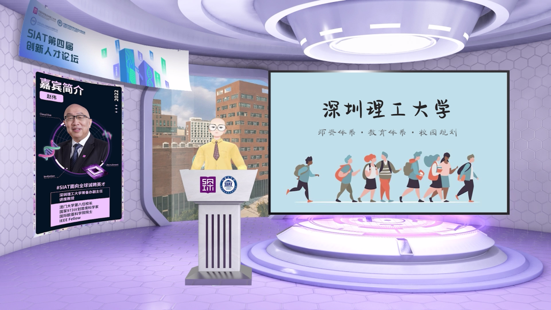 5月27日,“SIAT第四届IBT创新人才论坛”成功举办。本次活动由中国科学院深圳理工大学(暂定名,以下简称“深理工”)、中国科学院深圳先进技术研究院(以下简称“深圳先进院”)及深圳先进电子材料国际创新研究院突破性地以“元宇宙”+“直播”的形式联袂召开。SIAT搭建起“元宇宙”会场,请来多位重量级嘉宾分享,并由各学科代表、HR在现场进行互动交流。这些来自世界各地的参会学者,可在虚拟空间随时移动、切换会场,以多种形式(语音/视频)自如沟通,这无疑是一次令人振奋的全新尝试。