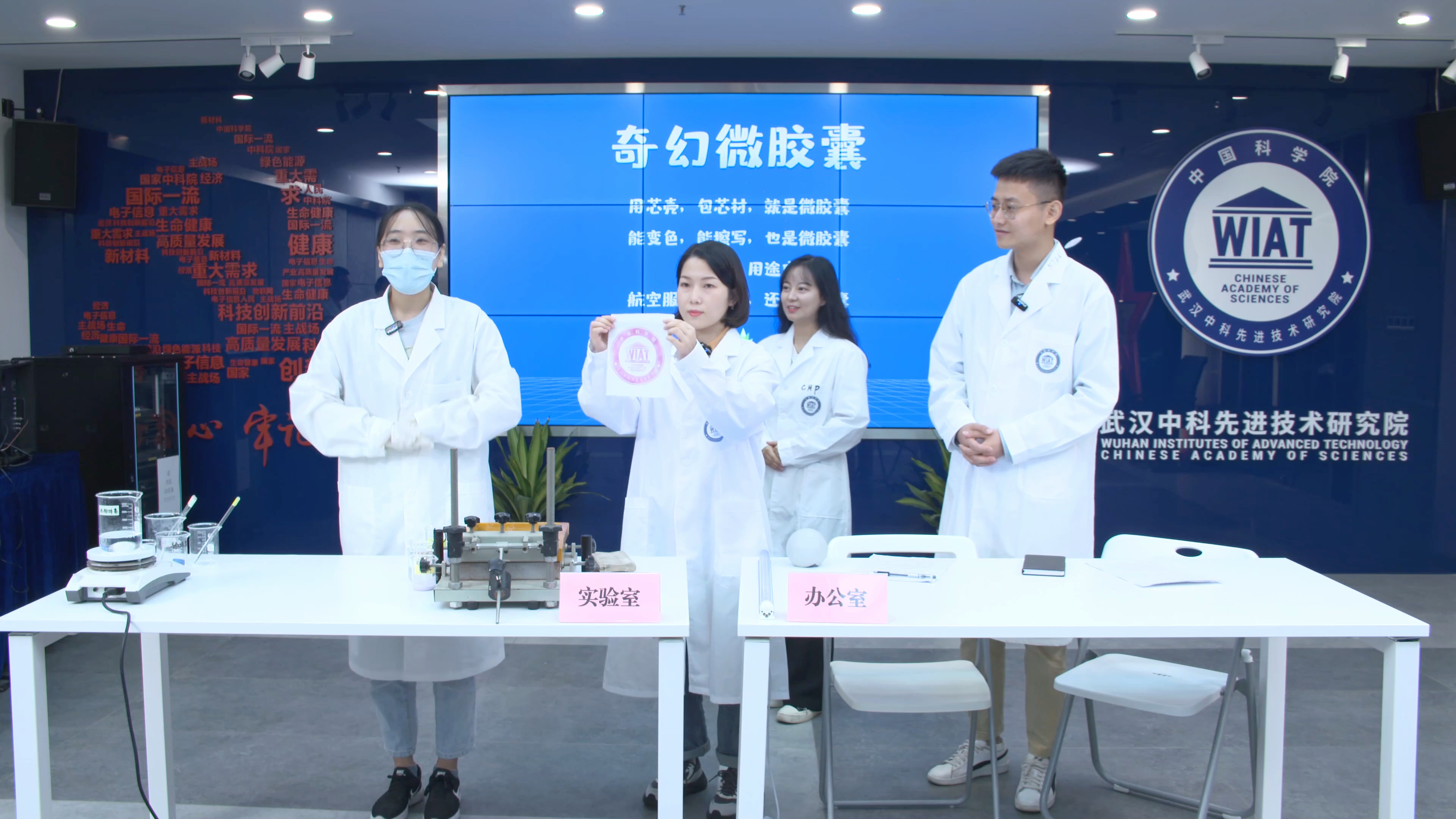 作为湖北省唯一一支入围第四届全国科学实验展演汇演决赛圈的代表队,武汉先进院展演的作品《微胶囊的奇幻世界》通过生动活泼的情景演绎、幽默风趣的科学讲解、严谨精确的中试过程演示,深入浅出地解释了什么是“高大上”的微胶囊技术、感温变色微胶囊的制备方式以及武汉先进院无醛微胶囊的产业化应用等。短短6分钟的展演过程,平时严肃专业的科技工作者演绎出他们有趣灵动的另一面,引得直播平台观众纷纷点赞留言。