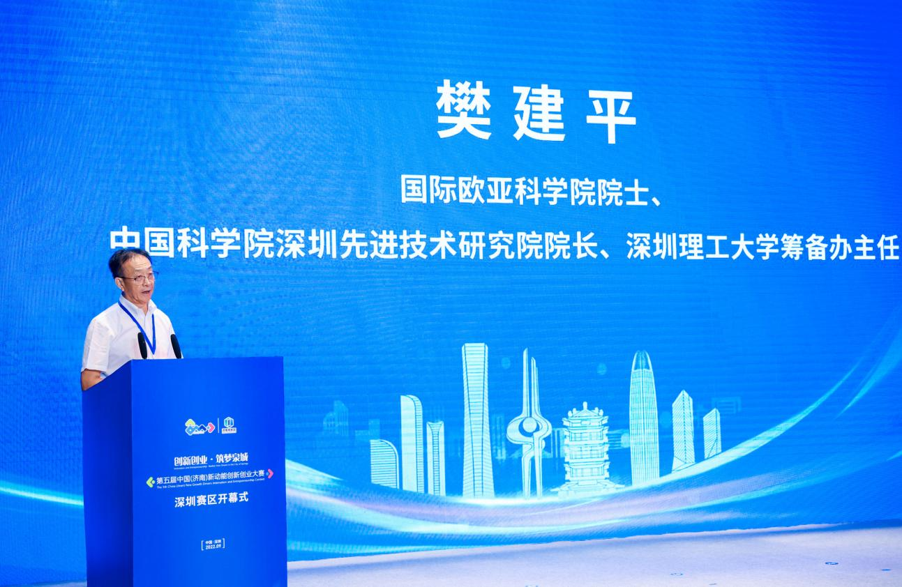 9月20日,第五届中国(济南)新动能创新创业大赛深圳赛区开幕式隆重举行。本次大赛设济南、深圳两个会场,采用线上+线下相结合的方式,两地连线同步举行。国际欧亚科学院院士、中国科学院深圳先进技术研究院院长、深圳理工大学筹备办主任樊建平,山东大学国家糖工程技术研究中心主任、济南高层次人才发展促进会会长凌沛学,济南市委组织部副部长、市人力资源和社会保障局局长王壮,国际欧亚科学院院士、中国科学院深圳先进技术研究院集成所所长、山东中科先进技术有限公司董事长李光林,中国科学院深圳先进技术研究院院地合作与成果转化处处长吴小丽,中国科学院深圳先进技术研究院科研处副处长张鹏及济南市各政企代表共同出席了活动
