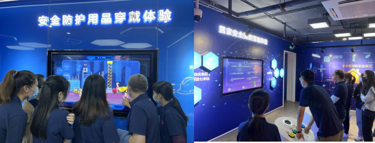 深圳先进院安委办一行在讲解员的引导下依次参观了居家安全、消防安全、建筑施工安全、交通安全、工业安全、4D灾难体验中心等6个体验区,以及序厅和展览厅。其中红外体感、 AR (虚拟现实)等多技术融合的互动模式给大家带来了超乎想象的“真实”体验。