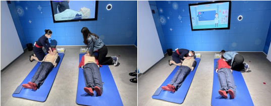 除了身临其境的体验,馆内还设置了许多趣味抢答、技能学习等环节,如:心脏复苏演练、灭火器操作演练、趣味问答跳舞机等,既能达到学习的目的,也让安全教育变得有乐趣。在观看学习过程中,安委办一行认真听讲,积极思考、互动,现场氛围活跃。