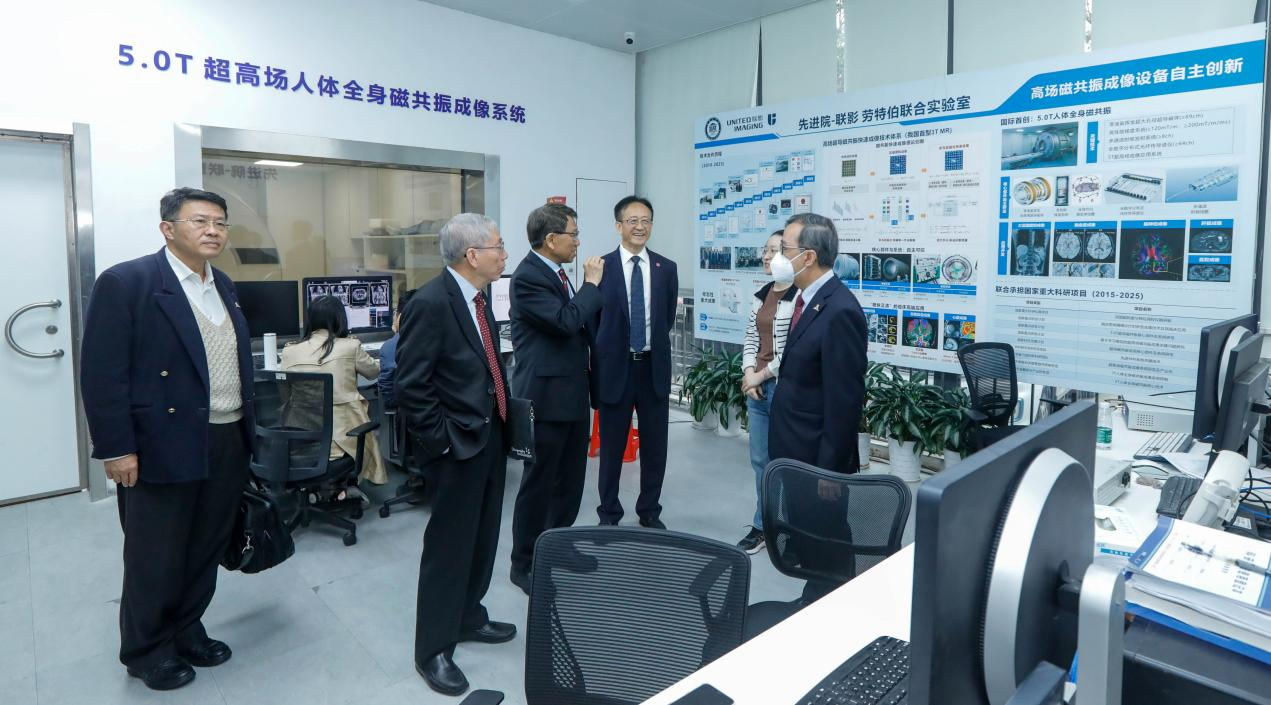段崇智一行听取了深圳先进院的十六年发展情况及深理工的筹建进展,了解了深圳先进院的在科技创新、人才队伍建设、成果转化、国际合作等方面的最新进展,并实地参观了高端医疗影像、机器人与人工智能、先进材料、脑科学、合成生物等实验室,与科研人员进行深入交流。段崇智表示,深圳先进院的科研环境,队伍非常年轻有活力,是一个能让科学家很快投入和深浸于研究的科研平台。