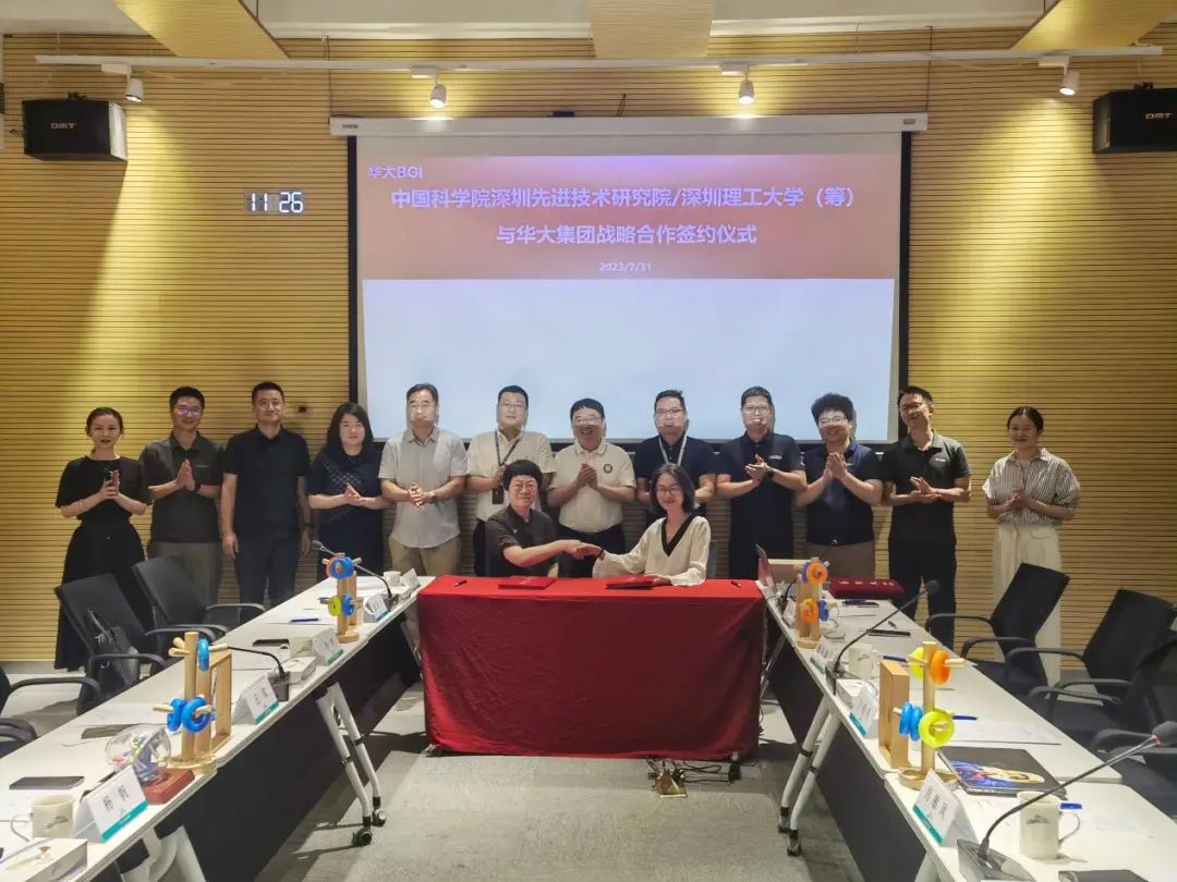 7月31日上午,中国科学院深圳先进技术研究院、深圳理工大学(筹)(两者合称SIAT)与华大集团共同签署战略合作框架协议及博士研究生联合培养协议,开启双方在人才培养方面的深度合作。深圳先进院纪委书记王筑,计算与数字工程研究所所长李烨,教育处、教学事务处处长杨帆以及华大教育中心副院长肖敏凤等出席签约仪式。