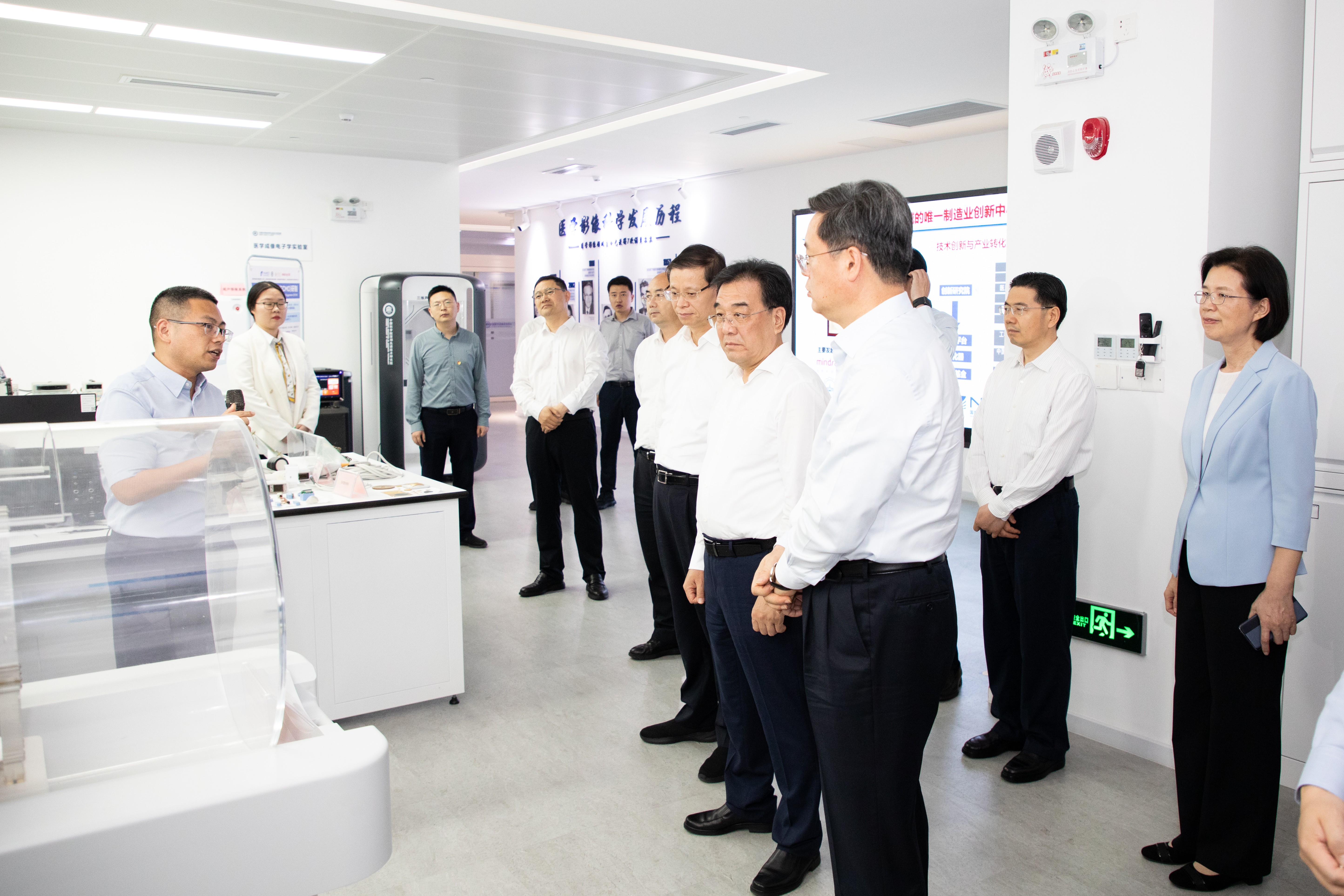 代表团实地参观深圳先进院医学成像科学与技术系统重点实验室,在实验室和展厅详细了解了深圳先进院在医疗器械与科学仪器、集成电路材料与封装、合成生物制造等关键技术上取得的科研进展。