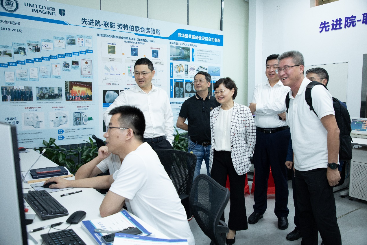 郑海荣向王月琴一行介绍了深圳先进院在体制机制、科技创新、人才培养及成果转化等方面工作情况。随后王月琴一行先后参观生物医学与健康工程研究所、脑认知与脑疾病研究所、先进材料科学与工程研究所,听取相关部门负责人汇报。