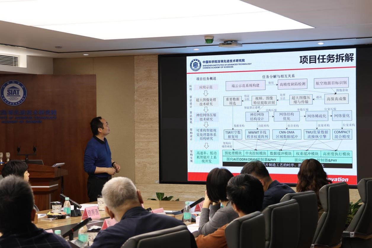 2024年3月14日,由中国科学院深圳先进技术研究院异构智能计算体系结构与系统研究中心主任喻之斌研究员牵头负责的广东省重点领域研发计划“新一代人工智能”重点专项项目“可敏捷定制的智能视觉处理器及系统应用”(编号:2019B010155003)顺利通过验收。广东省科学技术情报研究所受广东省科学技术厅委托主持验收会、中国科学院深圳先进技术研究院科研处谭乐副处长,项目评审专家及项目组核心骨干30余人参加了本次验收会议。本项目由中国科学院深圳先进技术研究院牵头,联合了芯动微电子科技(珠海)有限公司、深圳市辰卓科技有限公司、中山大学、中国科学院长春光学精密机械与物理研究所、中国科学院计算技术研究所6家单位共同承担。