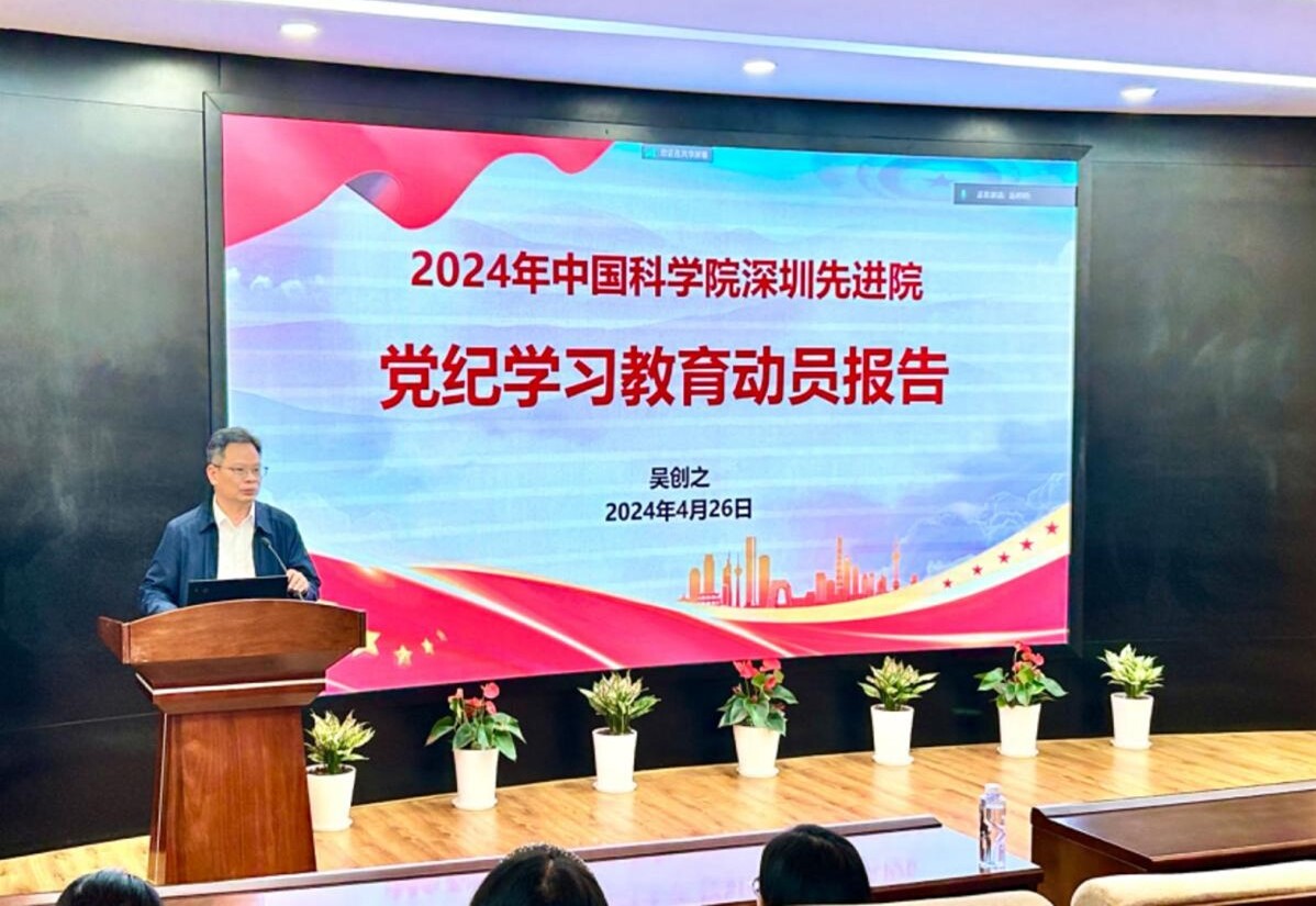 深圳先进院党委书记吴创之作党纪学习教育动员报告,传达学习了习近平总书记关于党纪学习教育的重要讲话精神和中国科学院党组关于党纪学习教育要求,带领大家学习新修订的《中国共产党纪律处分条例》,并对深圳先进院开展党纪学习教育提出要求和进行动员。