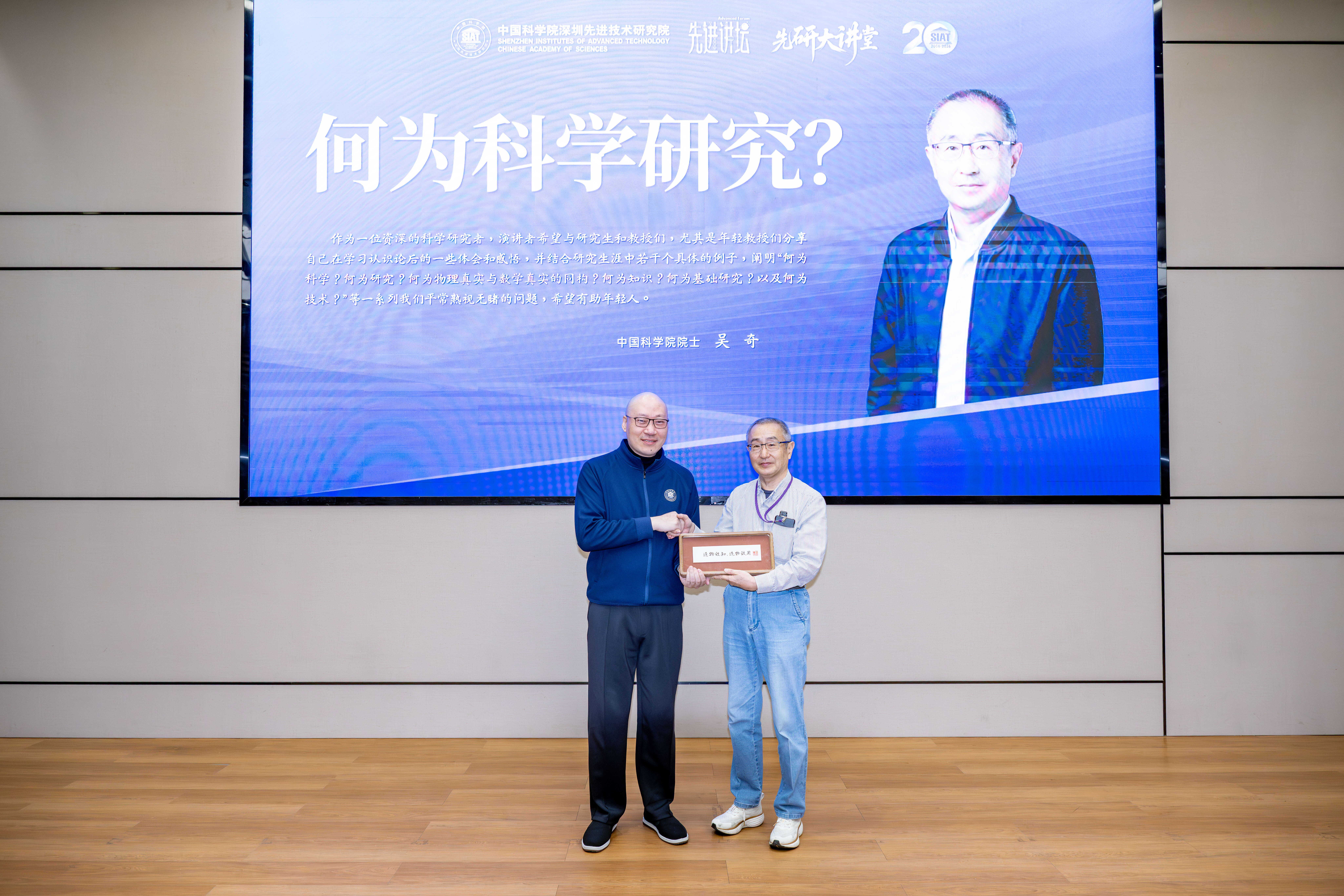 深圳先进院院长刘陈立向吴奇院士赠送讲座纪念